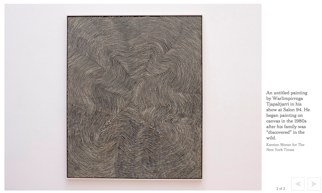 Posted: September 19, 2015 Filed under: art history, Australia 1 CommentSomebody or another on Twitter directed me to this NY Times article by Randy Kennedyabout Warlimpirrnga Tjapaltjarri, Australian Aboriginal artist: