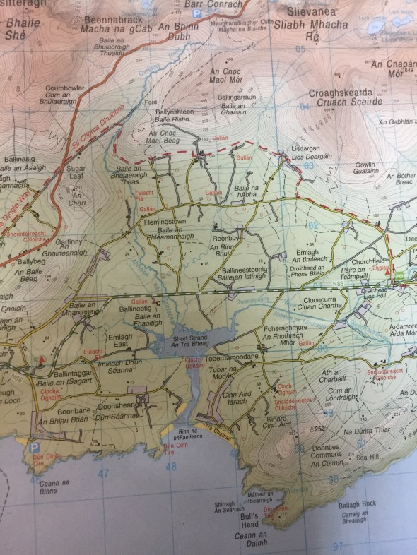 A friend is going to Ireland to do some landscape painting. I’m like, amazing. Plus this is a guy who usually gets it with maps. One day I sit down at my desk which has under its top an Ordnance Survey map of the Dingle Peninsula.