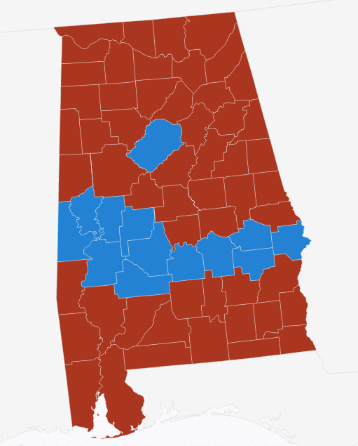 Posted: March 8, 2017 Filed under: America, politics, the world around us Leave a commentLook at this voting map of Alabama for President, 2016: