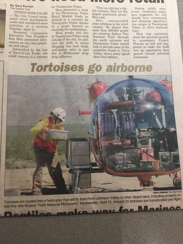 The top story in both the Hi-Desert Star and The Desert Trail is the removal of 1,100 desert tortoises from the Marine Corps base to safer lands.