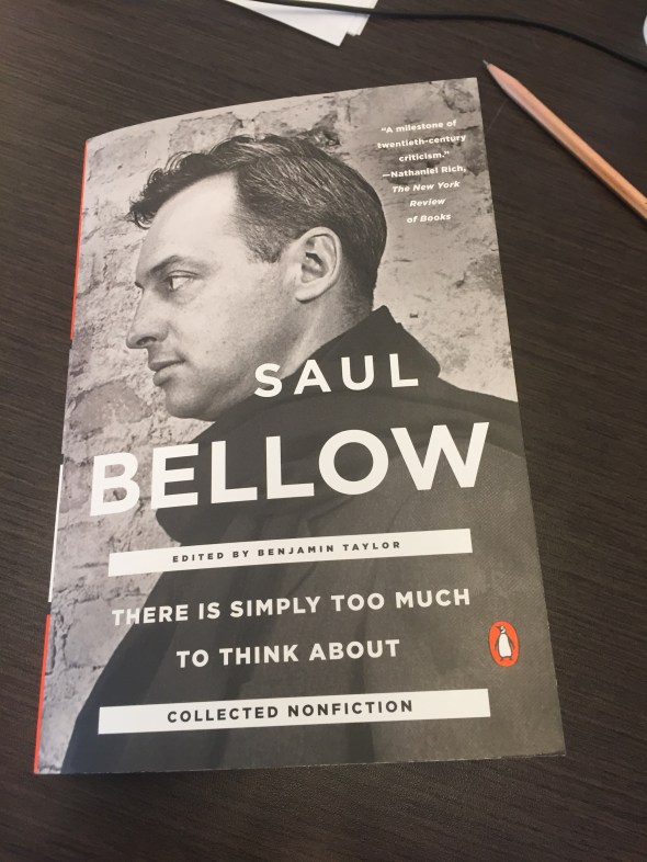So I says, let’s get a copy of this late essay of Bellow’s and see what he has to say. I’ve never read much Saul Bellow.