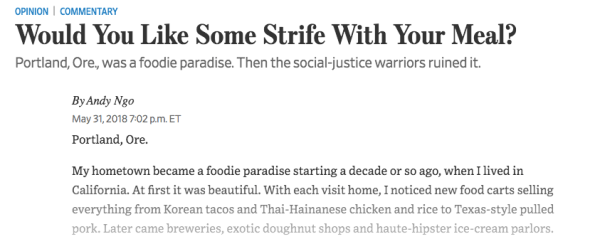 which caused my eyes to roll out of my head.  I was just in Portland, and the food was awesome!  It’s a “foodie paradise” because it’s in the Willamette Valley, on the Columbia River, near the North Pacific Ocean, one of the most bountiful regions on planet Earth, plus it’s prosperous and full of creative and interesting and diverse people.