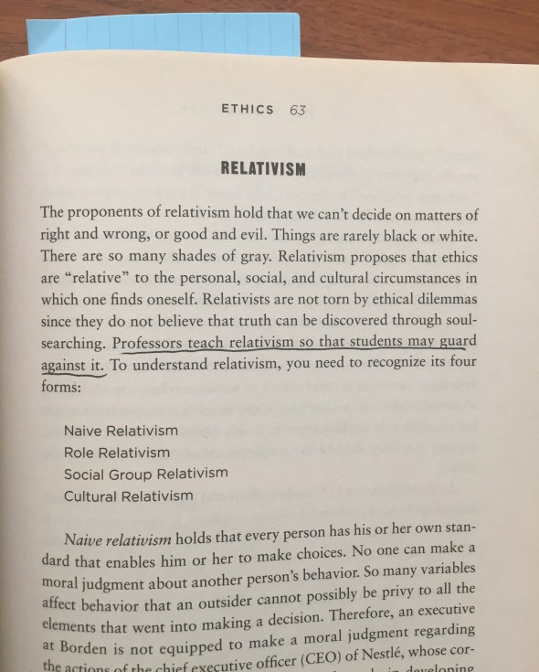 I thought this was a funny part. The chapter on ethics is of course the shortest, and much of it is devoted to a “I’m telling you this so you know not to do it” kind of moral reasoning.