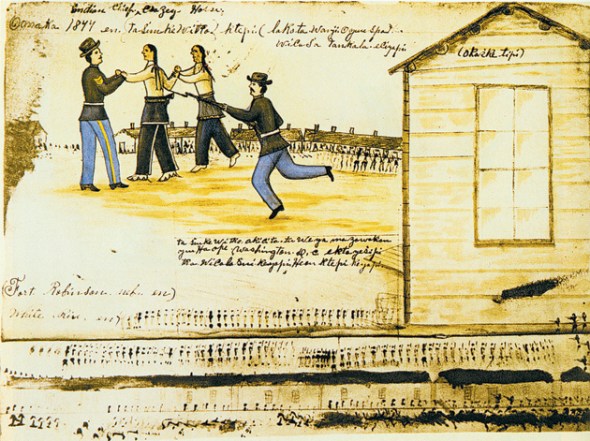 This Bad Heart Bull was an uncle of Amos Bad Heart Bull, the ledger artist, who made this drawing of the death of Crazy Horse: