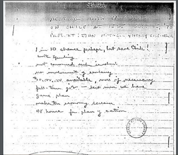 Declassified notes Richard Helms, CIA director, took at a September 15, 1970 meeting at the White House