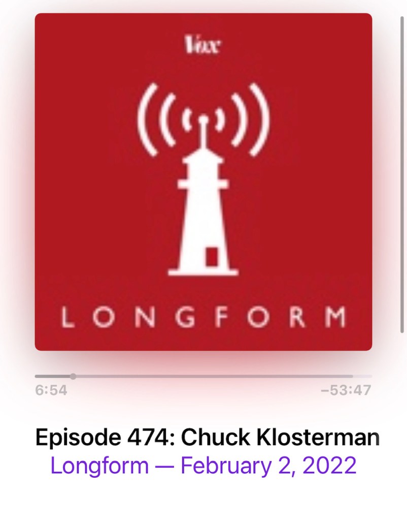 It’s interesting how we talk about a writer having a voice: Klosterman literally has a distinctive speaking voice (as do Sarah Vowell, David Sedaris, who else?)