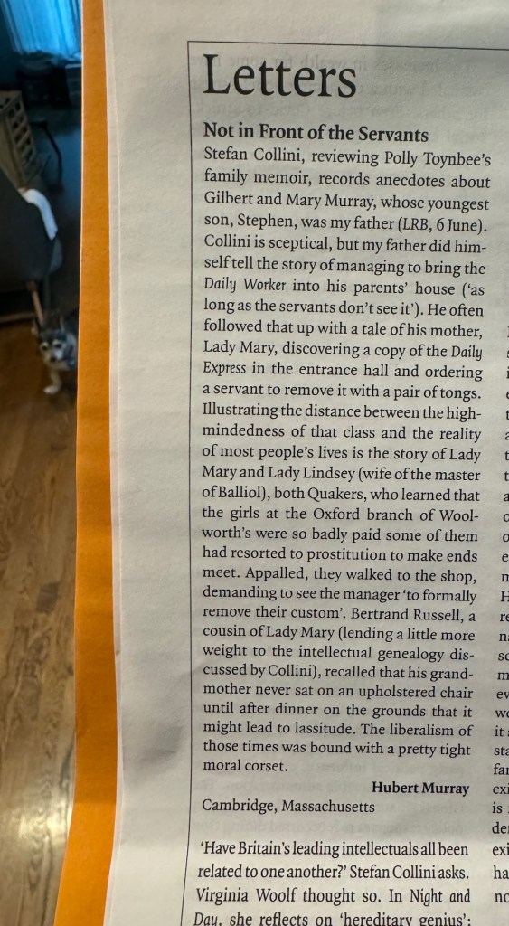 Posted: July 18, 2024 Filed under: London Leave a commentThe letters are the real reason to subscribe to The London Review of Books. Reading English magazines and papers is stimulating, your brain has to work just that little bit harder to try and penetrate the layers.