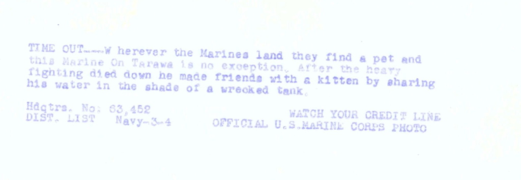 Photograph of a Marine Giving Water to a Kitten on Tarawa
