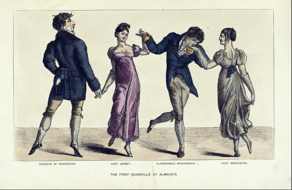 one thing (the TV series Mr. Loverman, the island of Antigua) led to another (William Clark’s Ten Views in the island of Antigua, The British Library’s Flickr page) and I’m looking at this great party from the Reminiscences of Captain Gronow, formerly of the Grenadier Guards and M.P. for Stafford, being Anecdotes of the Camp, the Court, and the Clubs, at the close of the last War with France, related by himself)