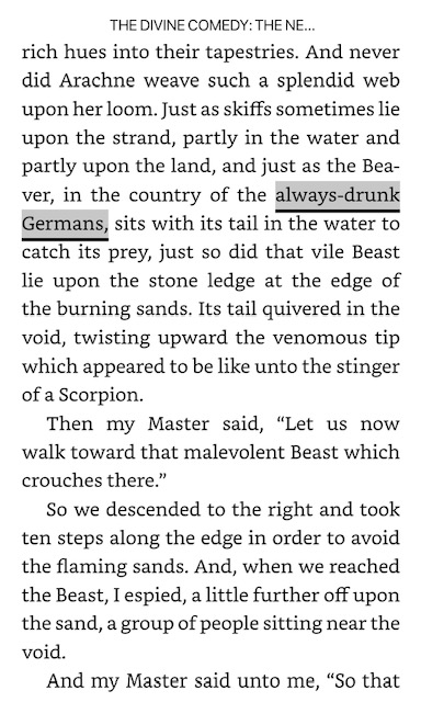 Cheers to Tom B., age fourteen or something, describing the Inferno as “self insertion fan fiction.” It is!