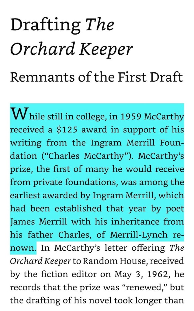 Interesting that James Merrill may have launched Cormac McCarthy: