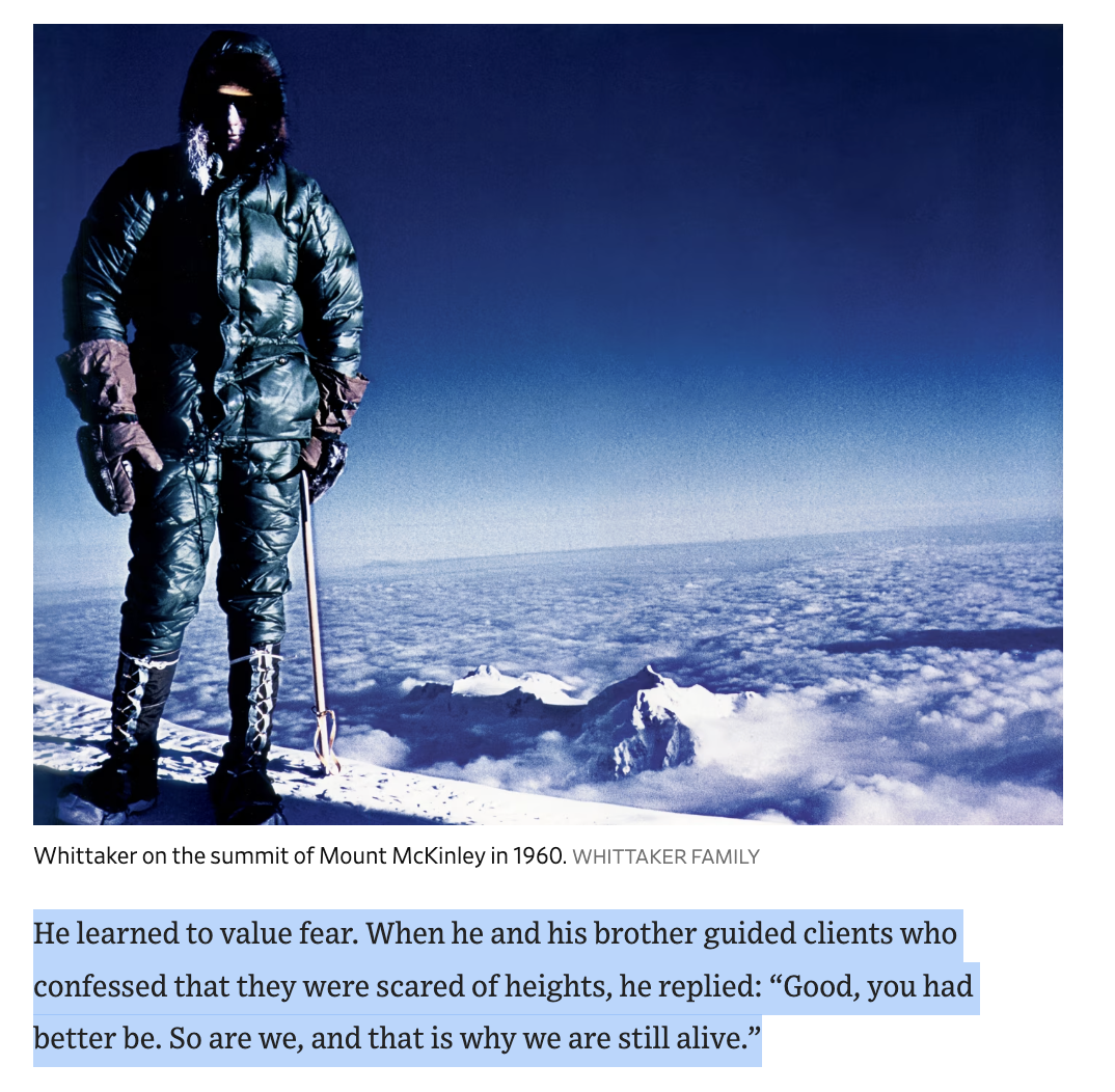 from WSJ obituary of Jim Whittaker, first American to climb Everest/Chomolungma. We love mountaineering photography.