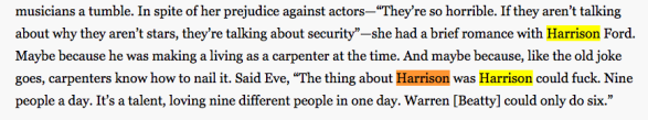 Eve Babitz on Harrison Ford in Vanity Fair back in 2014.