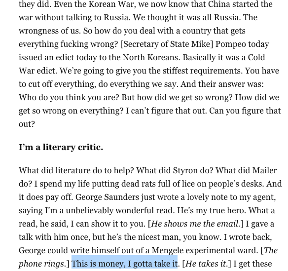 Wild interview of Christian Lorentzen and Seymour Hersh in NY Mag.