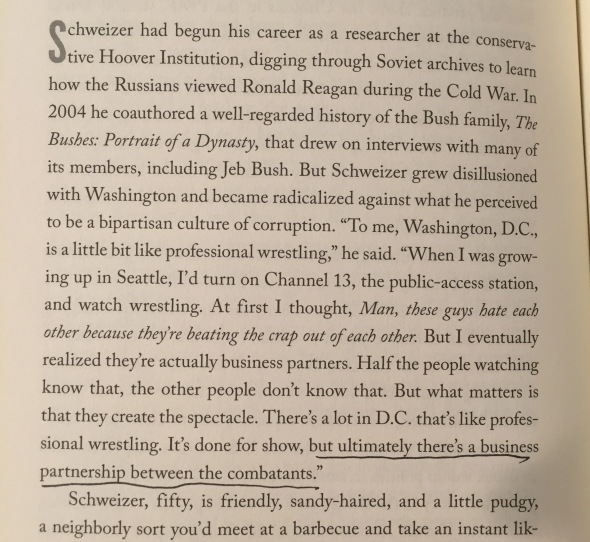 A very similar complaint voiced by Clinton Cash author Peter Schweitzer in the Devil’s Bargain book about Trump and Bannon: