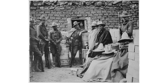 “Villa bandits who raided Columbus, New Mexico, caught by American soldiers in the mountains of Mexico and held, in camp near Namiquipa, April 27, 1916.” from NARA
