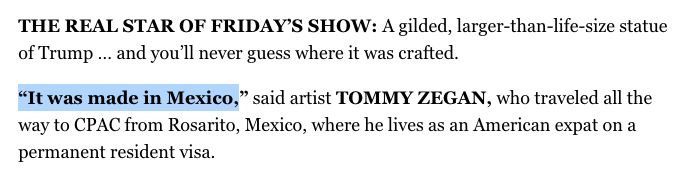 re: the Trump golden statue. From Politico Playbook. If politics is pro wrestling, Playbook is the closest thing I can find to a “dirt sheet.”