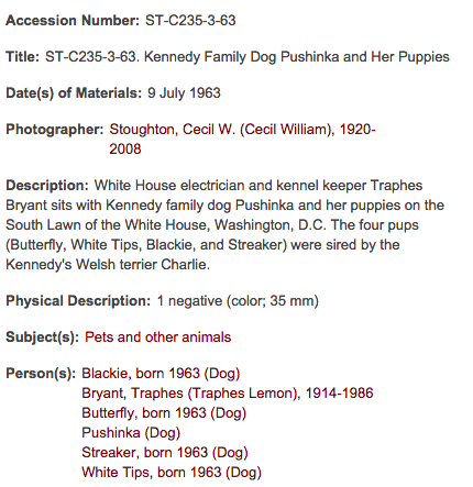 The puppy was Strelka’s daughter, Pushinka, listed on her official registration certificate as a “non-breed” or mongrel.