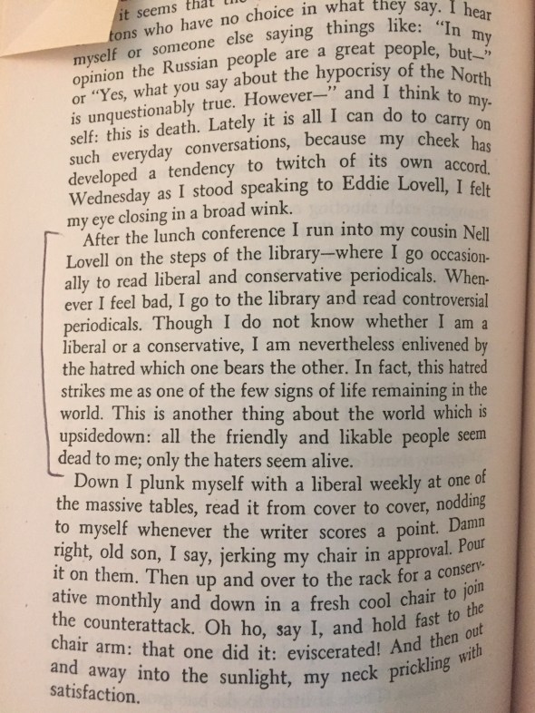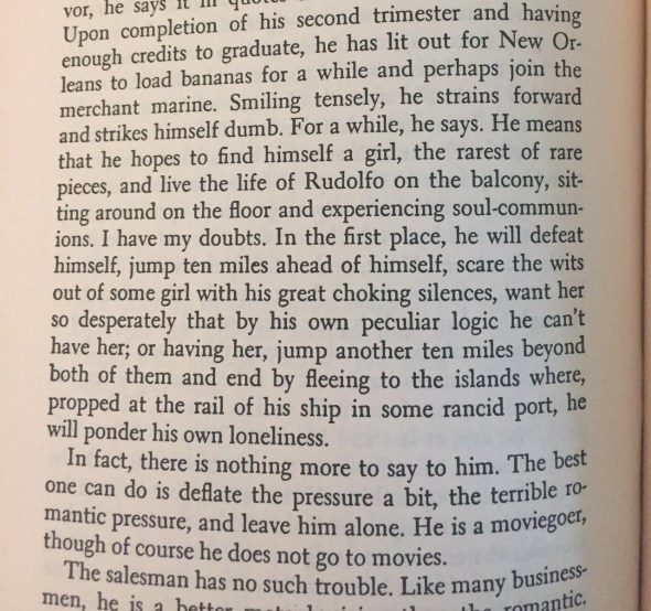 Took this one off my shelf the other day. Think I was supposed to read it in college but never finished it. The plot didn’t propel me along, but there’s some magic to it for sure. A relaxed New Orleans kind of existentialism.