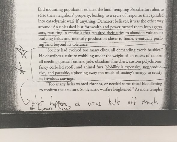 I’ve come into possession of someone’s mysterious notes on a printed out copy of Alan Weisman’s book The World Without Us. Reason to suspect the note-taker is a Helytimes reader.