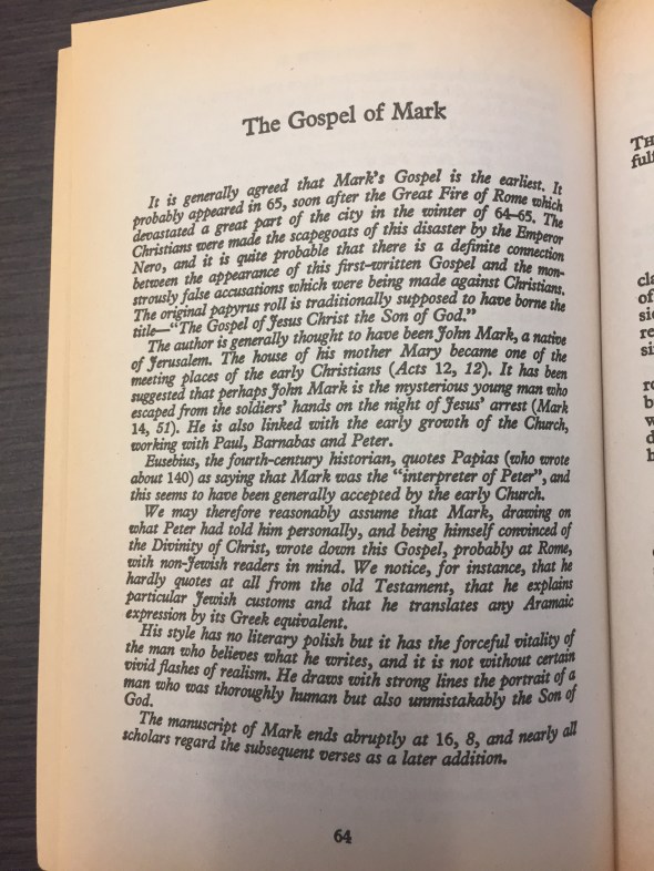 We’ve been talking about Mark, and how the evidence is compelling that it is probably the oldest record we have of a guy who lived and taught sometime around years now marked 1-30 AD named Jesus.