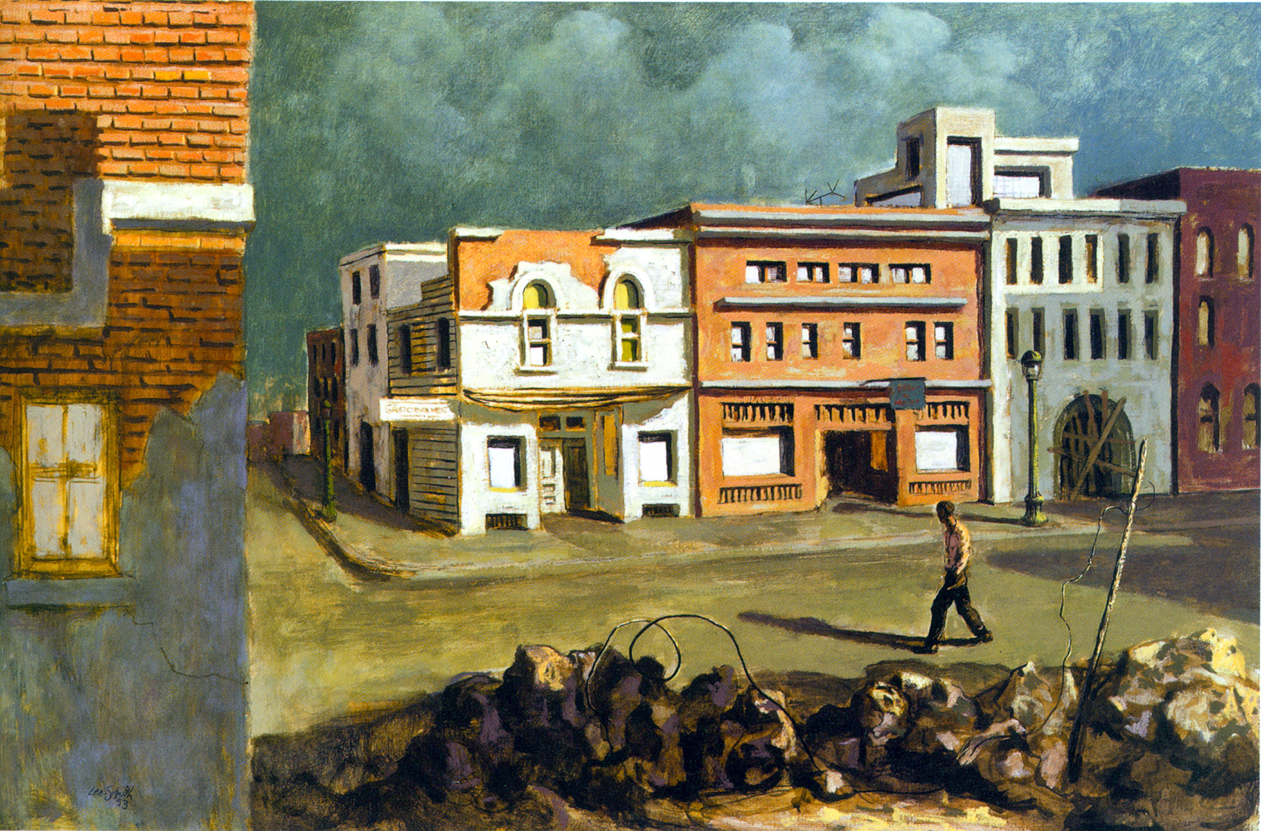was trying to capture the stark steepness of the street across the lake, and the special but unrelenting quality of afternoon sun in LA, and also how LA can look very lush and inviting while also having a kind of washed down, contained, prison-like aspect.