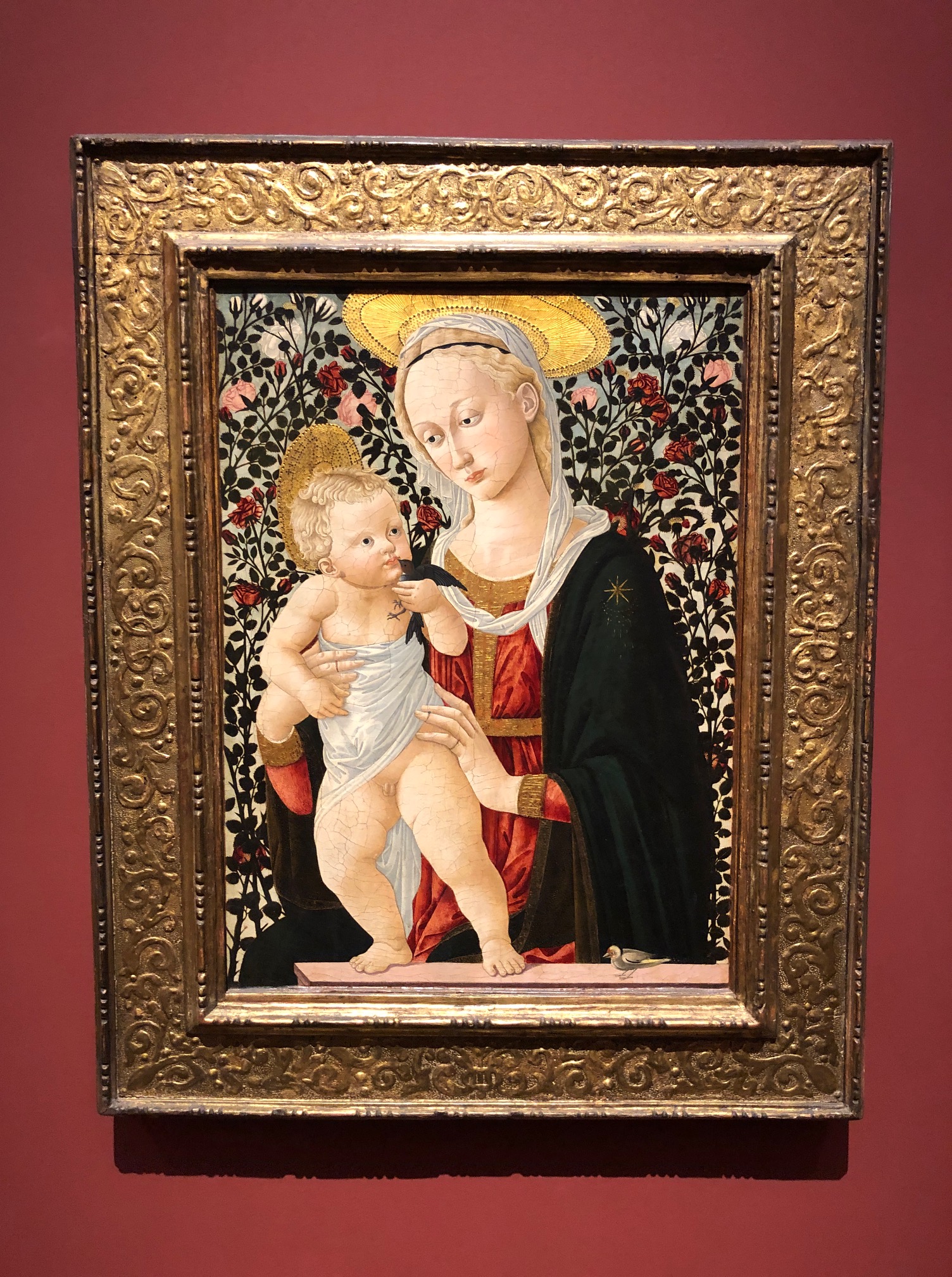 The wall placard attributes Christ Arrested to the Workshop of Hieronymous Bosch, not Bosch himself. And how about Madonna of the Roses, by Pseudo-Pier Francesco Fiorentino?