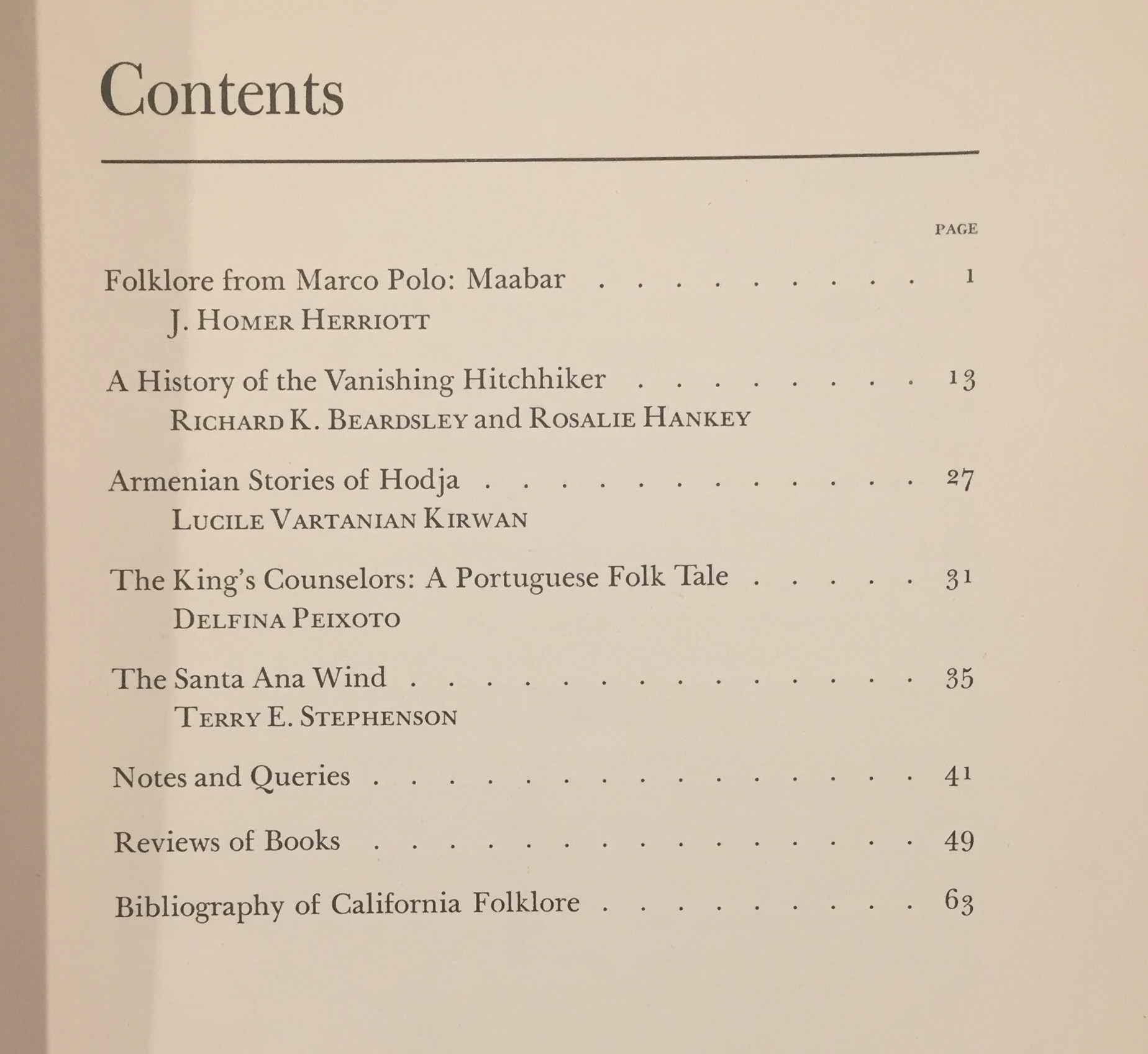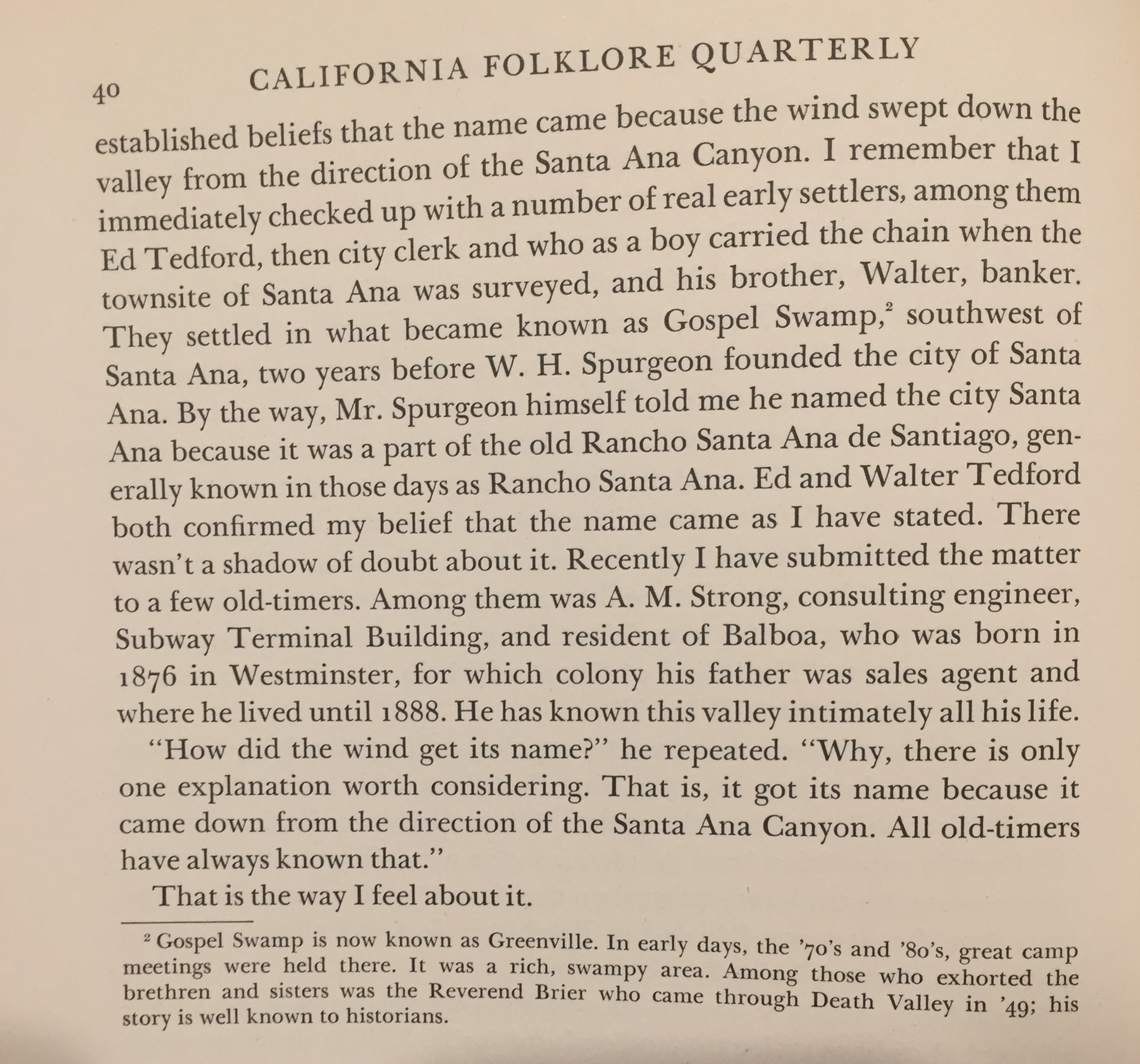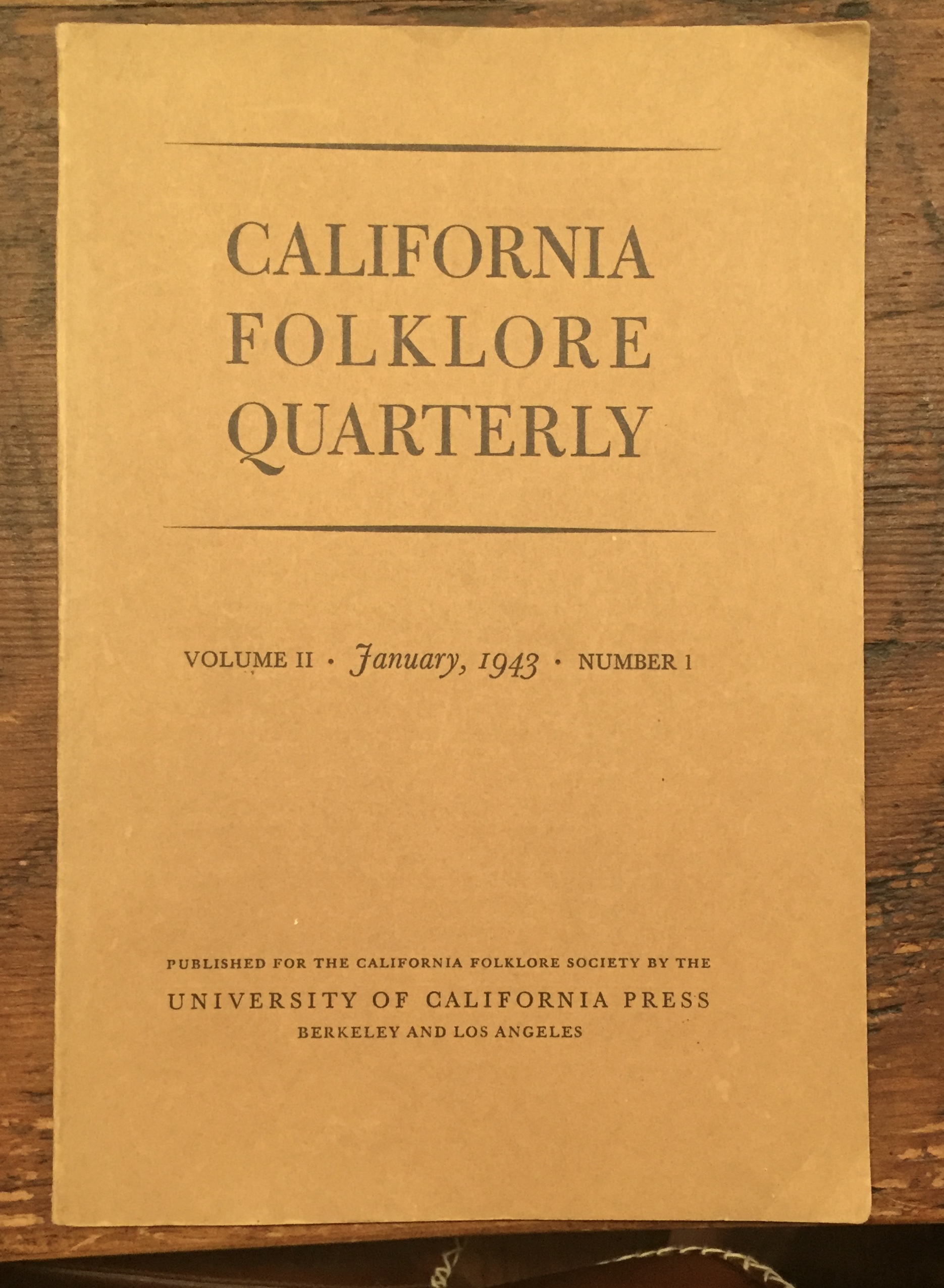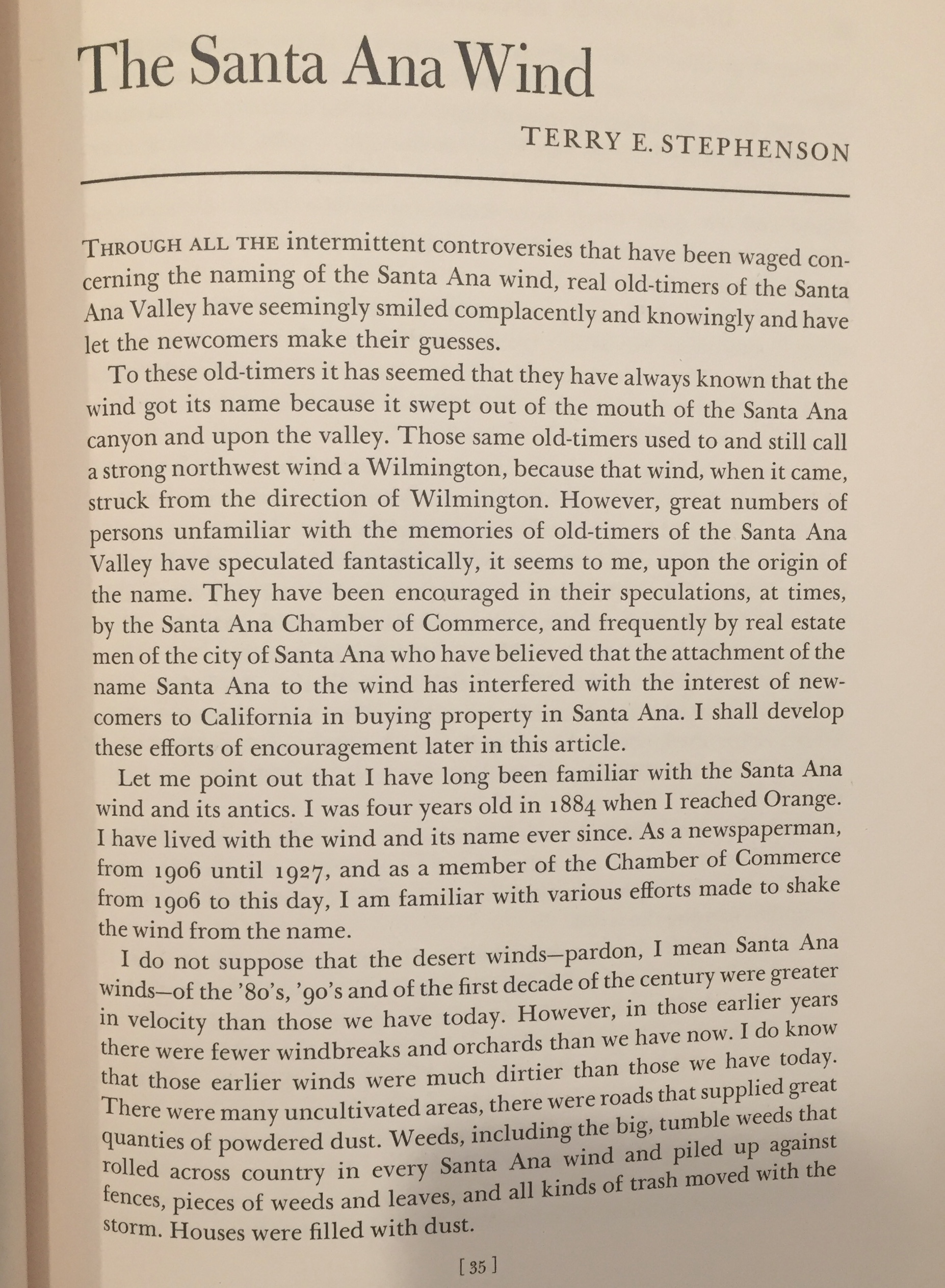 One of the oldest references to the Santa Ana winds appears to be in a January, 1943 issue of California Folklore Quarterly. Luckily we have that issue handy, and present it here for any interested California scholars.