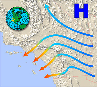 The definition of these winds in common use gets kind of loose. Any wind that’s blowing not the cooling, perfume air of the Pacifc, but the dry, harsh air off the desert, can get counted as a Santa Ana wind.