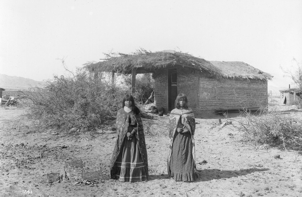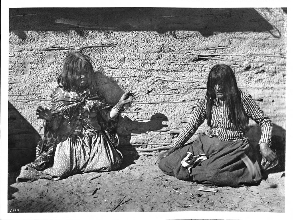 Two Mojave Indian women playing a game (fortune-telling with bones?), ca.1900: