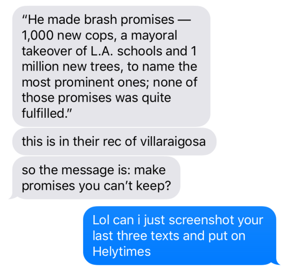 Texting with a friend about why on Earth LA Times endorsed sorry-ass Villaraigosa: