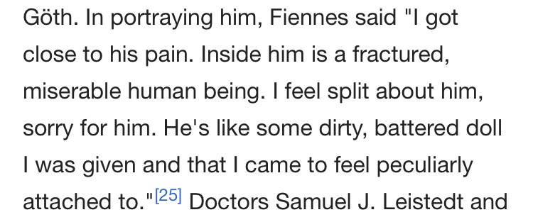 Ralph Fiennes performance, the humanity, the realness he brings to someone whose crimes just overload the brain’s ability to process.