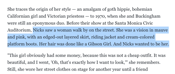 Imagine being the anonymous stranger who inspired Stevie Nicks’ whole style. From an LA Times/Yahoo profile by Amy Kaufman.