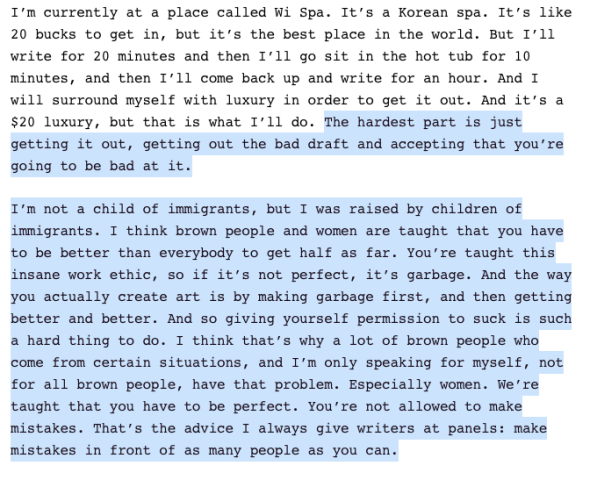 Posted: July 22, 2018 Filed under: writing, writing advice from other people 2 CommentsThe hardest part is just getting it out